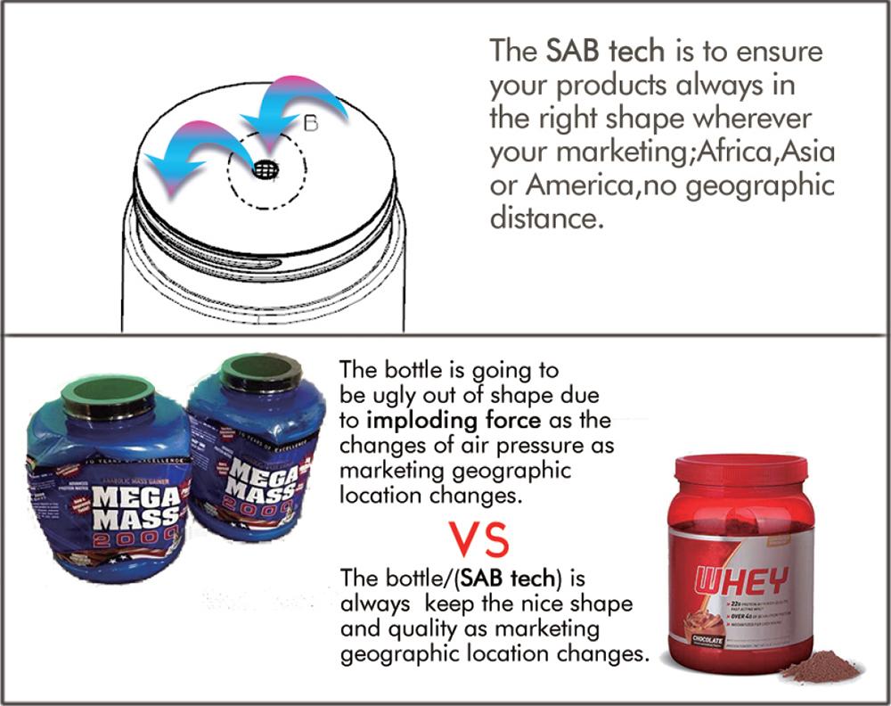 La lata PET utiliza material plástico aprobado por la FDA con un revestimiento de inducción ventilado en cada tapa para mantener el equilibrio entre la presión del aire interno y exterior.